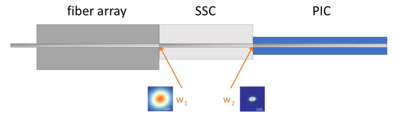The SSC models with a waveguide angle of 14.49° are intended for coupling with indium phosphide (InP) PICs that have 7° waveguide angles. They are compatible with the Smart Photonics multi-project wafer (MPW) platform and any other matching InP foundry platforms.